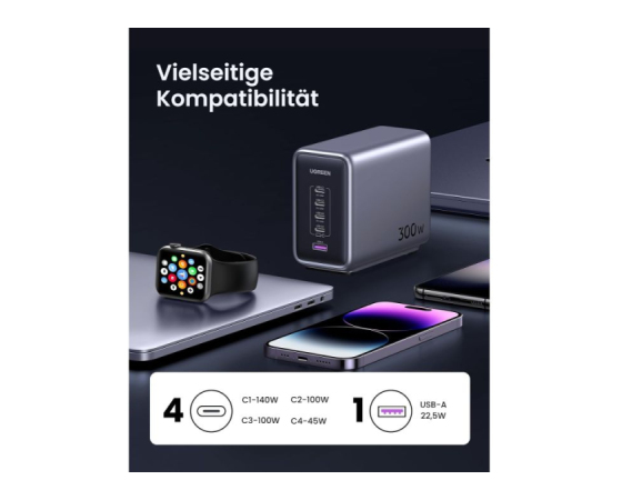 USB C polnilec 300 W s PD 3.1 je združljiv s skoraj vsemi napravami. npr. B. Združljiv z MacBook Pro 16" (M2 Pro, 2023) / 16" (M1 Max, 2021) / MacBook Air 2023/ ThinkPad X1/ Dell XPS/ Surface Book 2; iPhone 15 Pro Max/ Pro/ 15/ 14 / 14 Plus / 14 Pro / 14 Pro Max / 13 / 13 mini / 13 Pro. / / 13 Pro Max /12 / 12 Pro / 12 Pro Max / 12 mini / SE 2 / SE 3 / Galaxy S23 / S23+ / S23 Ultra / S22 / S22+ / S22 Ultra / S21 / S21+ / S21 Ultra / Note20 / Note 20 Ultra itd.