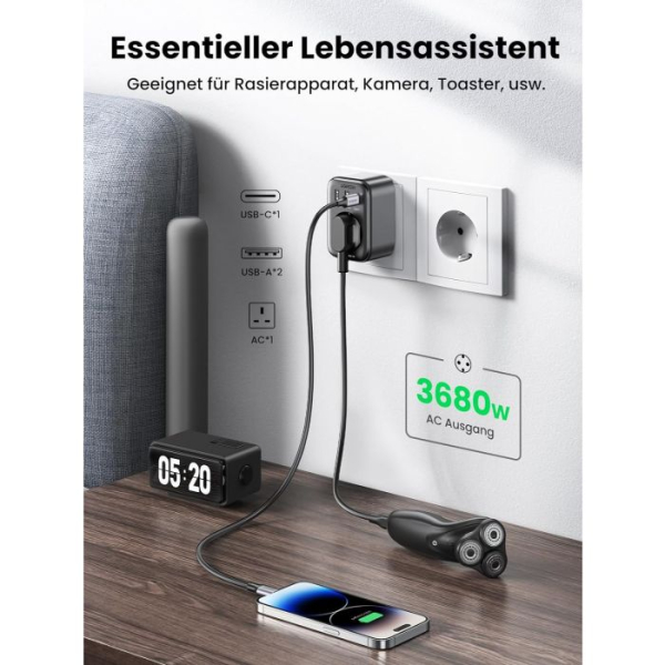 S to vtičnico 4 v 1 lahko priročno polnite in uporabljate svoj pametni telefon, brivnik, power bank, iPhone, slušalke in celo najzmogljivejše naprave, kot so prenosni računalniki, britvice, projektorji, kamere, aparati za kavo, opekači kruha, sokovniki.
