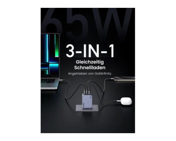 z 2x vrati USB-C in 1x USB-A lahko naš polnilnik s 65 W hkrati polni 3 naprave od mobilnih telefonov do tabličnih računalnikov in prenosnikov, kar zagotavlja čisto in urejeno namizje, brez zapletov kabli. Namesto več, zadostuje ena.