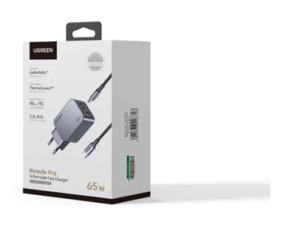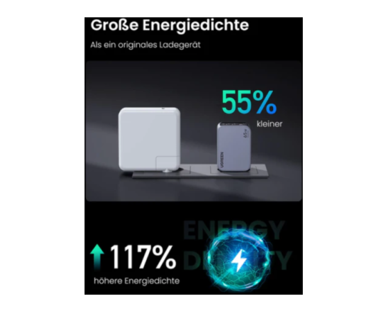 Manjša velikost, večja gostota energije. Ta polnilnik UGREEN USB C z visoko močjo 65 W je 55 % manjši od originalnega polnilnika 67 W, medtem ko se gostota energije poveča za 117 %. Tako bo bolj kompakten in prostorsko varčen, idealen za potovanja in lahko izjemno hitro napolni vaše naprave.
