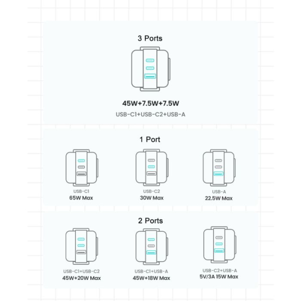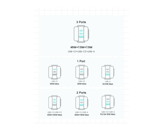 z 2 vhodoma USB C in 1 vhodom USB A je naš polnilnik združljiv z različnimi napravami.
