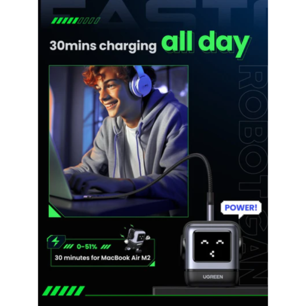 Polnilnik USB C s 65W združuje funkcionalnost z igrivostjo.