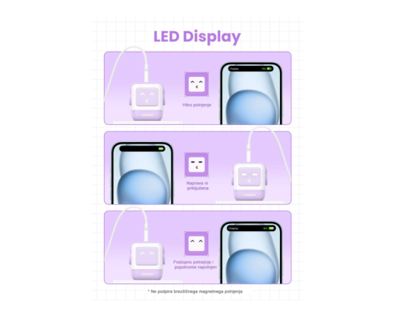 LED zaslon deluje le takrat, ko je polnilec priključen v električno omrežje.