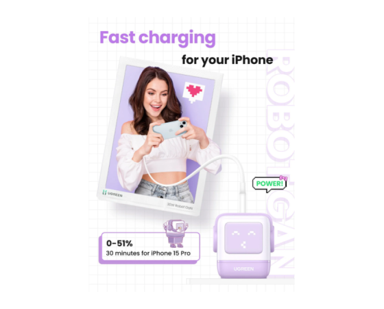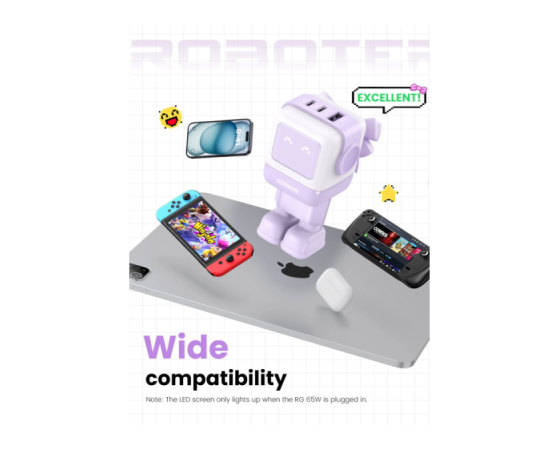 Polnilnik USB C s 65W združuje funkcionalnost z igrivostjo.