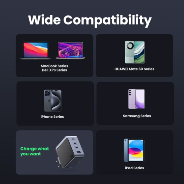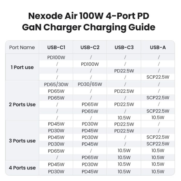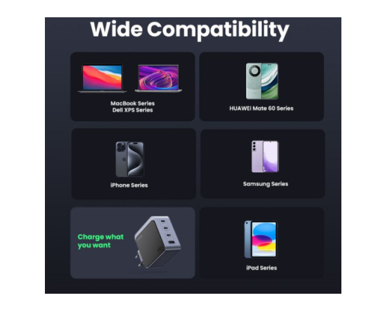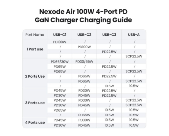 Vam je mar za hitro in učinkovito polnjenje vaših naprav? UGREEN Nexode Air je odgovor na vaše potrebe! Polnilec zagotavlja 100 W moči in uporablja napreden čip GaNInfinity, zahvaljujoč kateremu lahko uživate ne le v hitrem, ampak tudi v stabilnem in varnem napajanju vaših naprav. Združljiv je z napravami priljubljenih blagovnih znamk, zahvaljujoč 4 polnilnim priključkom pa lahko prosto obnavljate energijo več naprav hkrati.