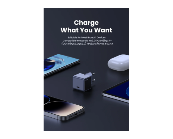 Pozabite na dolgo čakanje, da je vaša naprava pripravljena za uporabo! Polnilec ponuja moč do 30 W in podpira številne protokole hitrega polnjenja, vključno s QC, PD, AFC, PPS in Apple 5V/2.4A. Vse to pomeni, da bo polnjenje iPhone 15 do 59% trajalo le 30 minut!