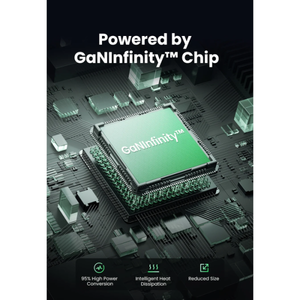 Pozdravite prihodnost polnjenja! Polnilnik UGREEN Nexode uporablja najnovejšo tehnologijo GaNInfinity, ki revolucionira način polnjenja naprav. Zahvaljujoč temu sistemu polnilec ne deluje le bolj učinkovito in uspešno, ampak je tudi bolj vzdržljiv in kompakten. Zagotavlja tudi inteligentno odvajanje toplote, ki pomaga ohranjati optimalno temperaturo med polnjenjem.