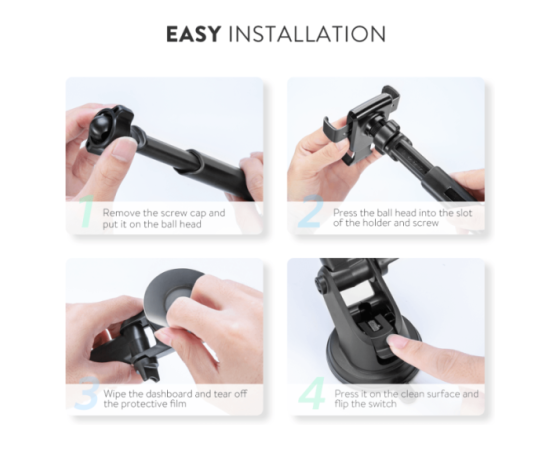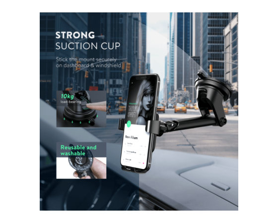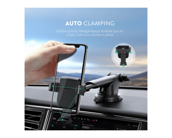 Z zasnovo gravitacijske povezave to držalo telefon preprosto "zaklene" na svoje mesto. Z eno roko lahko telefon varno namestite na držalo.