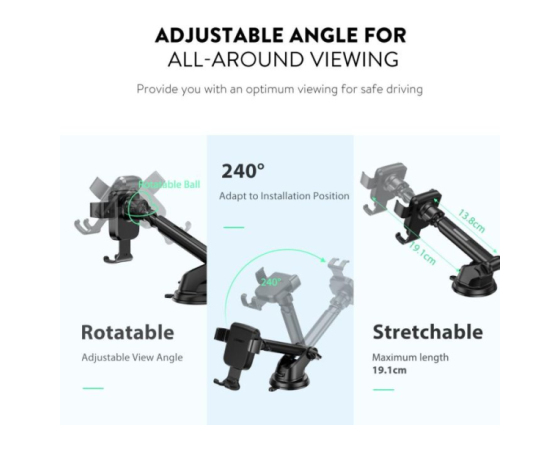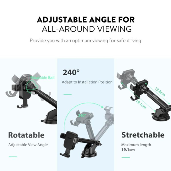Gravitacijsko držalo za telefon lahko razširite tako, da se prilega priljubljenim pametnim telefonom z velikostjo zaslona od 4,7 "do Max 7" zaslona.
