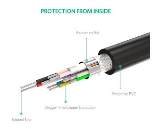 Izjemna zmogljivost: bakreno jedro 2824AWG zmanjšuje prenosno impedanco in zagotavlja prenos signala brez izgube podatkov. Trojno zaščiten (folija / pletenica / zemlja) zagotavlja največjo upornost EMI / RFI in vrhunsko kakovost signala. Štiri jedrna struktura zagotavlja, da signali ne bodo motili drug drugega.