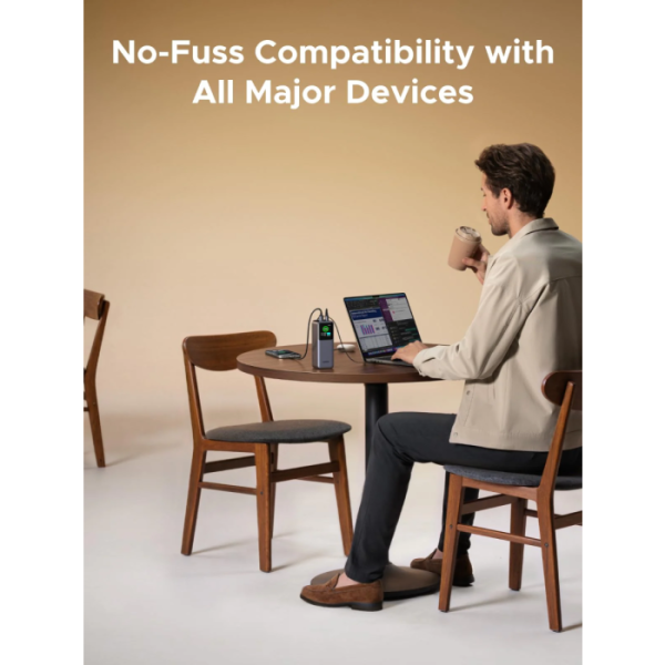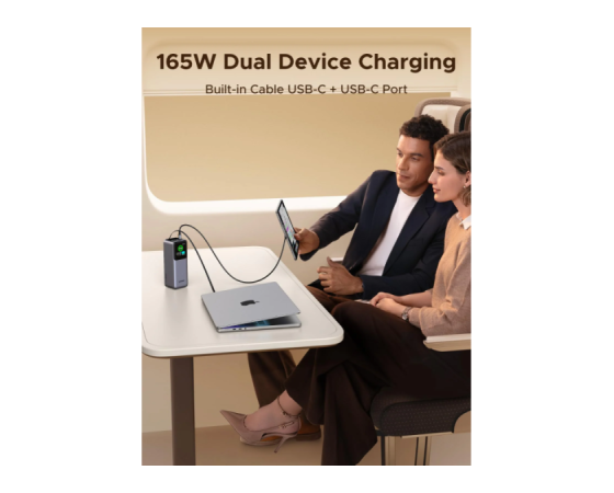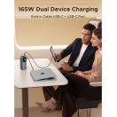 Skupna izhodna moč do 165 W omogoča hkratno polnjenje več naprav brez kompromisov pri hitrosti.