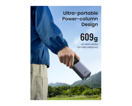 ta prenosni polnilnik ima napredno zasnovo stebra in ima ožjo širino in manjšo velikost od tradicionalnih napajalnikov z visoko zmogljivostjo in močjo. Enostavno ga postavite v ročni kovček ali osebno aktovko, kar zmanjša zasedenost prostora.