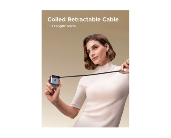 45W GaN hitri polnilec z izvlečnim kablom je polnilec podjetja UGREEN, ki ponuja učinkovito in prilagodljivo polnjenje za več naprav. Z vgrajenim izvlečnim kablom dolžine 0,7 metra lahko uporabnik nastavi dolžino v do osem različnih stopenj. Polnilec je prestal več kot 25.000 testov izvleka in več kot 10.000 testov upogibanja, kar zagotavlja vzdržljivost in enostavno uporabo.
