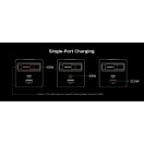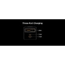 Polnilec ima tri različne priključke, ki omogočajo sočasno polnjenje do treh naprav, kar je priročno, ko je treba napajati več naprav hkrati. Tehnologija GaNInfinity™ zagotavlja 95 % učinkovitost in kompakten dizajn, ki je enostaven za prenašanje na poti. Polnilec vključuje osem plasti zaščite pred previsokim tokom, prenapetostjo, pregrevanjem in drugimi tveganji, medtem ko Thermal Guard™ spremlja temperaturo 200-krat na sekundo, da zagotovi stabilno in varno polnjenje.
