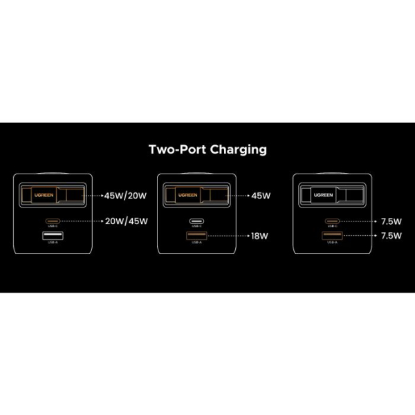 65W GaN hitri polnilec z izvlečnim kablom je polnilec podjetja UGREEN, ki ponuja učinkovito in prilagodljivo polnjenje za več naprav. Z vgrajenim izvlečnim kablom dolžine 0,7 metra lahko uporabnik nastavi dolžino v do osem različnih stopenj. Polnilec je prestal več kot 25.000 testov izvleka in več kot 10.000 testov upogibanja, kar zagotavlja vzdržljivost in enostavno uporabo.