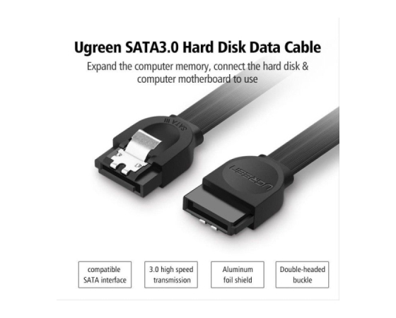 Ugreen SATA 3.0 kabel za priklop trdih diskov in ostali naprava s SATA priključkom.Dolžina kabla: 0,5MNa eni strani raven, na drugi strani kotni priključek.