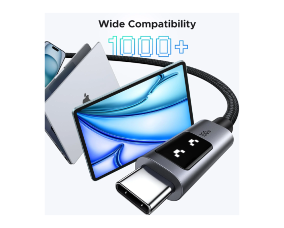 Polnilni kabel USB se brezhibno ujema z različnimi napravami USB-C na trgu, vključno z najnovejšimi mobilnimi telefoni, tablicami, prenosniki in drugimi.
