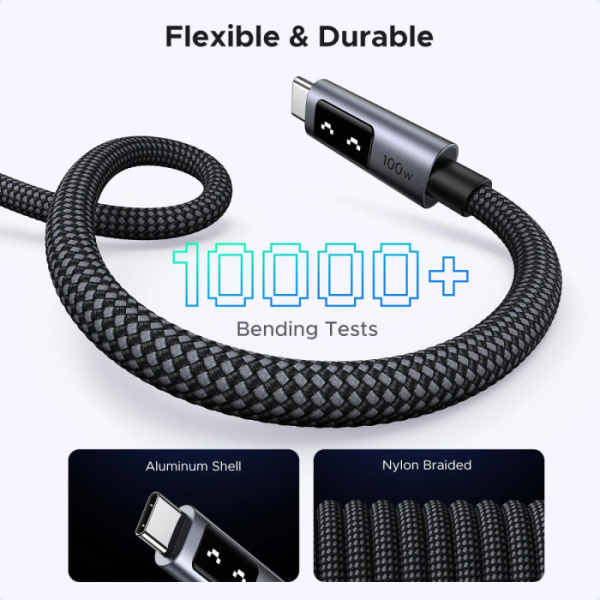 Ta kabel je izdelan iz visokokakovostnih aluminijastih in najlonskih pletenih materialov, zato se ponaša z robustno strukturo, ki se ne zapleta in zagotavlja dolgotrajno delovanje.