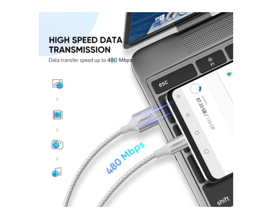 Ugreen USB 2.0 na USB-C kabel je visoko kvaliteten in zmogljiv kabel za vse vaše naprave z USB-C konektorjem.