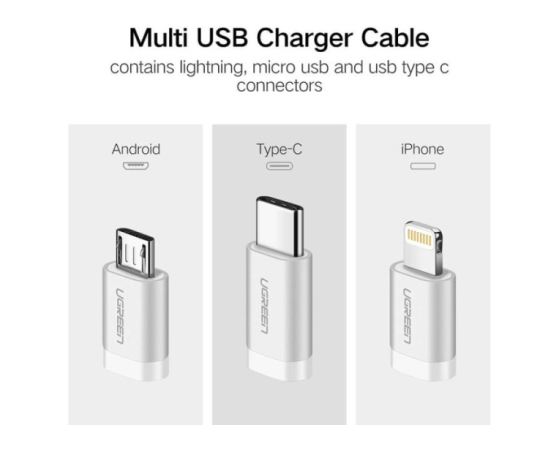 Ugreen USB 2.0 na Micro USB+Lightning+Type C (3 v 1)