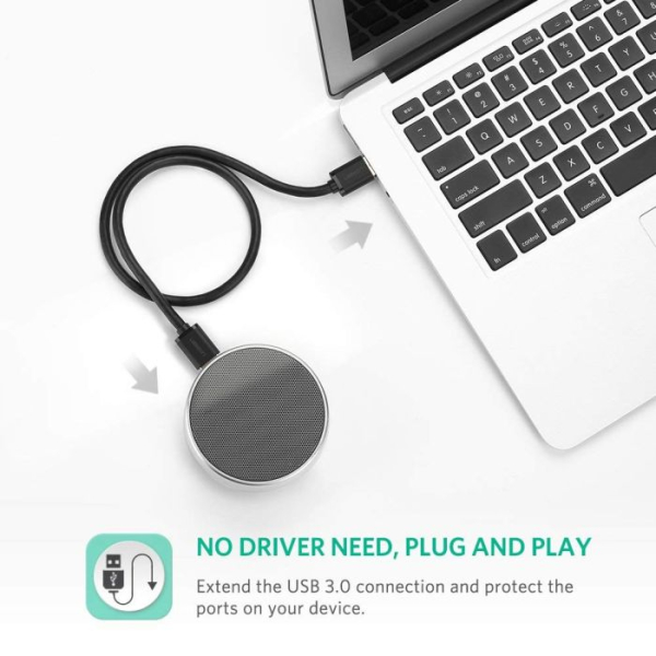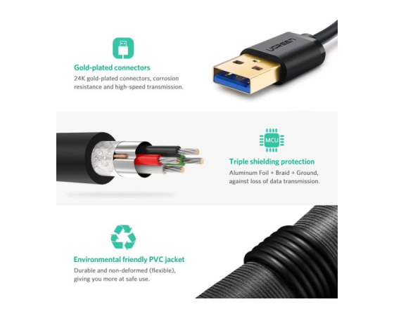 Ugreen USB-A 3.0 kabel (M na M) črn