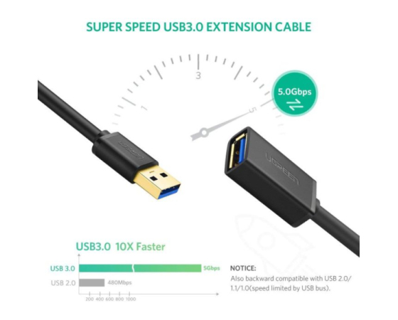 USB kabel za moške in ženske podpira hitrost prenosa podatkov do 5 Gb / s, 10-krat hitreje kot USB 2.0, medtem ko kabel USB 3.0 nazaj združljiv s standardnimi napravami USB 2.0 in USB 1.1.