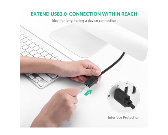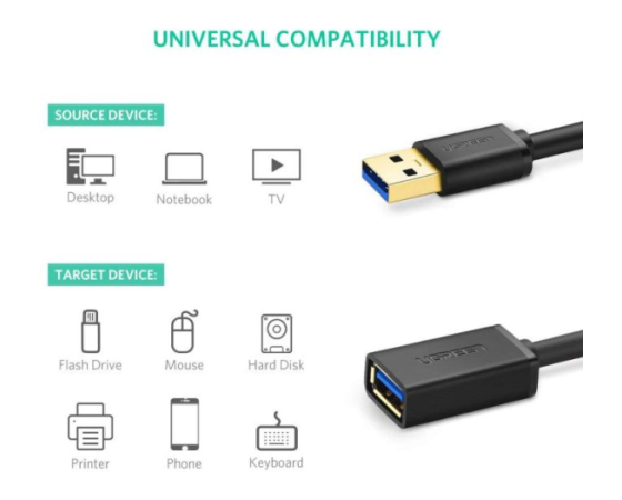 Podaljšek Ugreen USB 3.0 je zasnovan za razširitev povezave med vašim računalnikom, prenosnim računalnikom, tabličnim računalnikom ali MacBookom, ki je opremljen z izhodom USB in različnimi zunanjimi napravami USB, kot so HUB USB, tiskalnik, čitalnik kartic, vmesnik Bluetooth, slušalka Oculus Rift , optični bralnik, trdi disk, miška, tipkovnica in brez upočasnitve ali izgube podatkov.