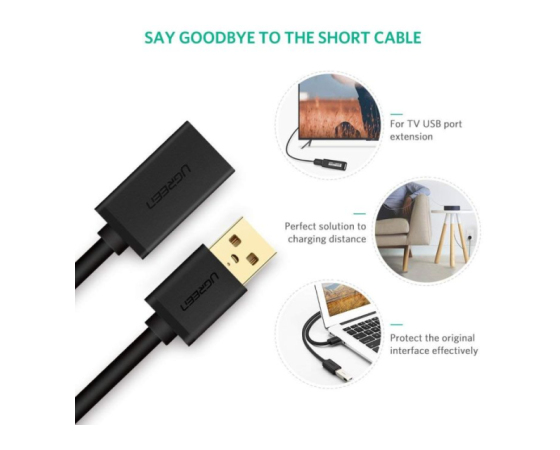 Ugreen USB 3.0 podaljšek (M na Ž) črn 2m - polybag