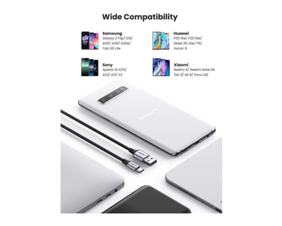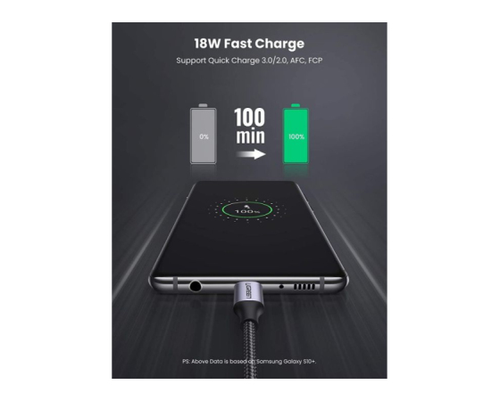 - UGREEN USB-C kabel podpira QC3.0/AFC/FCP