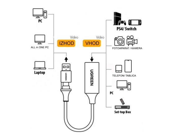 Ugreen adapter za zajem slike omogoča pretakanje oz. zajem slike preko HDMI kabla na USB-C (USB A) vhod na vašem računalniku s pomočjo programske opreme.