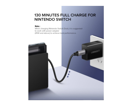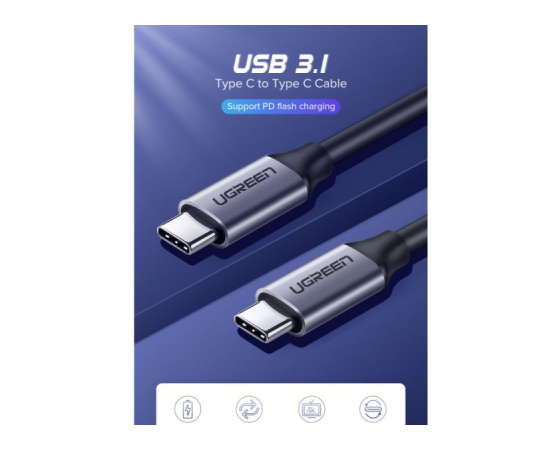 hitri polnilnik UGREEN USB C Cable 3.1 ponuja hitrejše in varnejše polnjenje prenosnikov ali mobilnih telefonov USB Type-C pri največ 20 V 3 A.