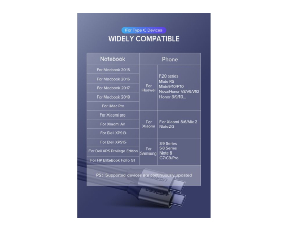Kompatibilen je tudi za MacBook 12" 2017/2016/2015, MacBook Pro 13" 2019/2018/2017/2016, MacBook Air 13" 2019/2018, Huawei Matebook X Pro, Google Chromebook Pixel, Dell XPS 13, Lenovo Yoga 900 720, Razer Blade Stealth 2018, ASUS ZenBook 3, HP