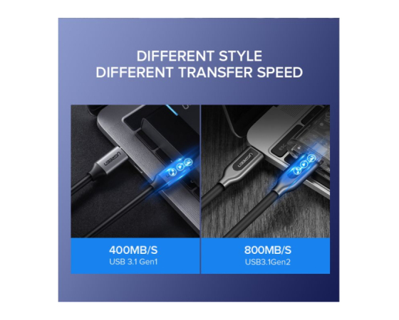 kabel UGREEN USB-C je skladen s standardom USB 3.1 Gen 1 in zagotavlja visoko hitrost sinhronizacije pri največ 5 Gbps, kar je 10-krat hitreje kot kabel USB 2.0 Type C.