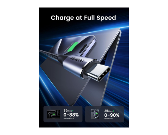 napolnite svoj MacBook Pro 2023 do 88 % v samo 35 minutah – dvakrat hitreje kot standardni kabli USB. Uživajte v učinkovitem in hitrem polnjenju brez čakanja.