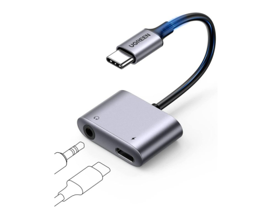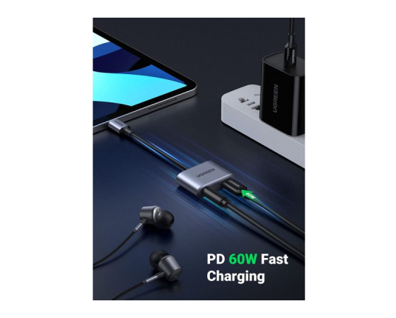 UGREEN USB C na 3,5mm adapter za slušalke in polnjenje 2 v 1 Type C na Aux Audio Jack s PD 60W.