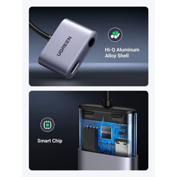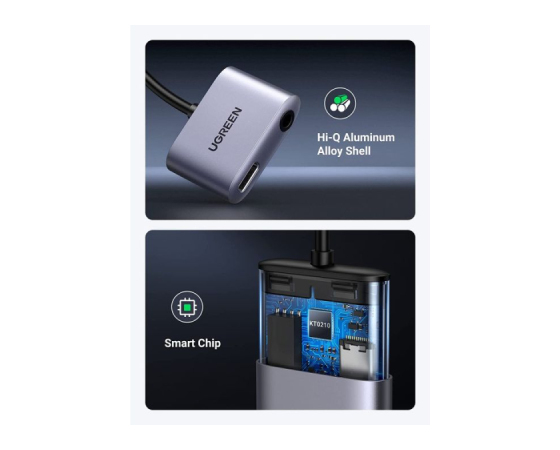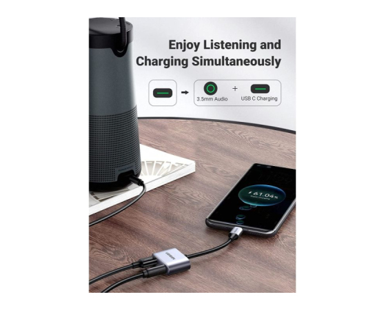 S tem adapterjem USB C v aux proizvajalca UGREEN dobite 3,5 mm vhod za slušalke na enem koncu in vrata USB-C na drugem, tako da lahko svojo napravo polnite med poslušanjem ali med klicem.