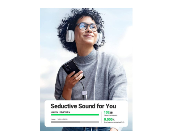 Ta 2-v-1 USB adapter za slušalke vam omogoča, da uživate v zvoku visoke ločljivosti na svojem pametnem telefonu z vgrajenim DAC čipom visoke ločljivosti.