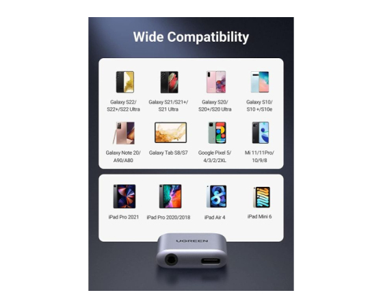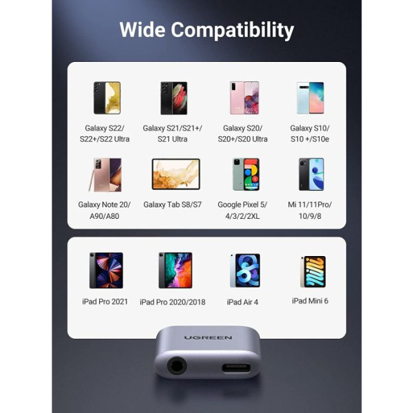 Ta adapter za slušalke UGREEN tipa C je združljiv s Samsung Galaxy S22/S22+/S22 Ultra/S21/S20+/S20 Ultra S20/S10/S10+/Note 10+/Note 10/Note 20 5G/Note 20 Ultra,