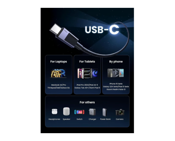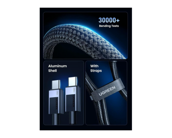 Z vgrajenim čipom E-Marker kabel UGREEN USB C na USB C podpira hitro polnjenje z močjo 240 W s tehnologijo PD3.1/PPS za hitro polnjenje vaših naprav USB-C z največ 48 V in 5 A, podpira hitro polnjenje PD z močjo 240 W, 100 W, 87 W, 61 W, 45 W, 30 W in 18 W.