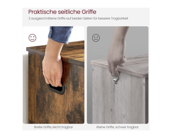 Široki, udobni stranski ročaji: Zahvaljujoč dvema izrezanima, prijaznima ročajema na straneh je to shranjevalno klop enostavno premikati, kjer potrebujete dodatno shranjevanje ali sedežno površino.