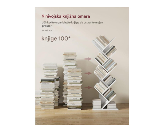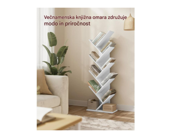 Iščete izviren način za razstavljanje svojih najljubših knjig? Ta moderna knjižna omara z 9 nivoji in značilno obliko drevesa bo v vaš dom vnesla red, toplino in stil.