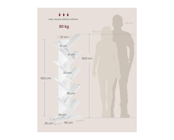 Dizajn, ki izstopa: S svojo geometrijsko "drevesno" obliko je idealna za ustvarjanje prijetnega bralnega kotička – naj veje zapolnijo vaše najljubše zgodbe.