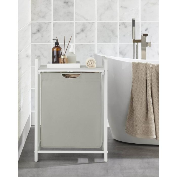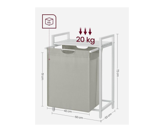 Enojna košara za majhne prostore: ta posamezna 65-litrska košara za perilo lahko sprejme tedensko količino perila za eno osebo. Košara z merami 50 x 33 x 72 cm je popolna za povečanje majhnih prostorov in kotov v vaši kopalnici, pralnici ali spalnici.