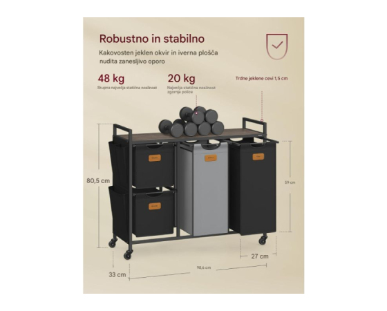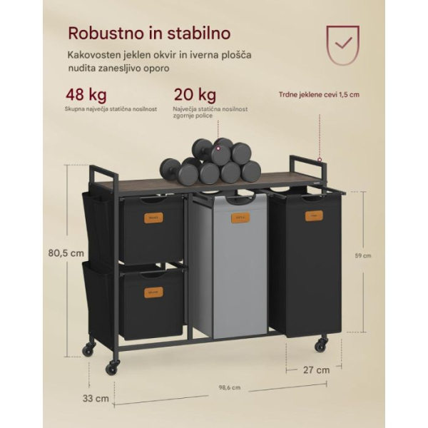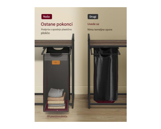 Največja statična nosilnost tega sortirnika za perilo je 48 kg. Ne preobremenjujte ga.