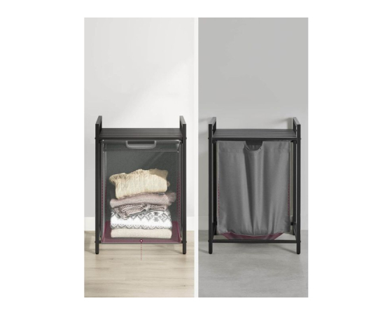 Izvlečna in odstranljiva košara: košara je opremljena s plastično spodnjo ploščo, ki preprečuje povešanje, zahvaljujoč zaponki na kavelj in zanko pa lahko košaro brez napora izvlečete in odstranite ter jo preprosto prenesete v pralni stroj