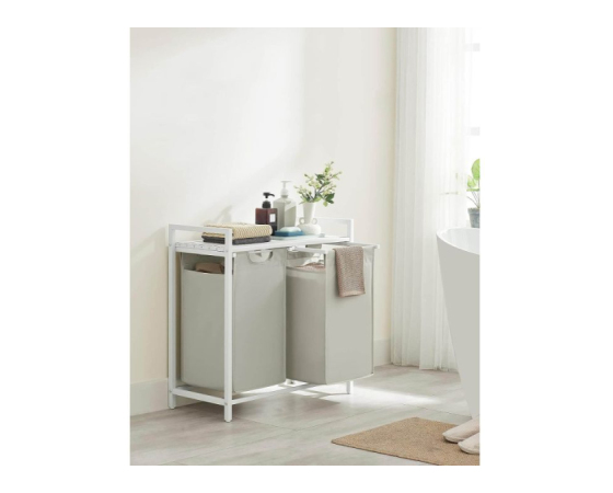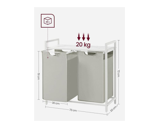 2 predelka za ločeno shranjevanje: ta koš za perilo ima skupno prostornino 92 L, pri čemer ima vsaka košara 46 L. Njegova zasnova z 2 predelki vam omogoča, da perilo organizirate po vrsti in ločite svetlo perilo od temnega