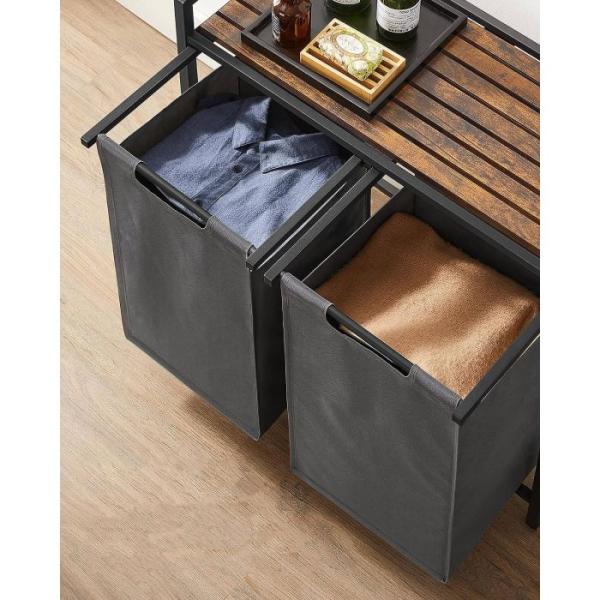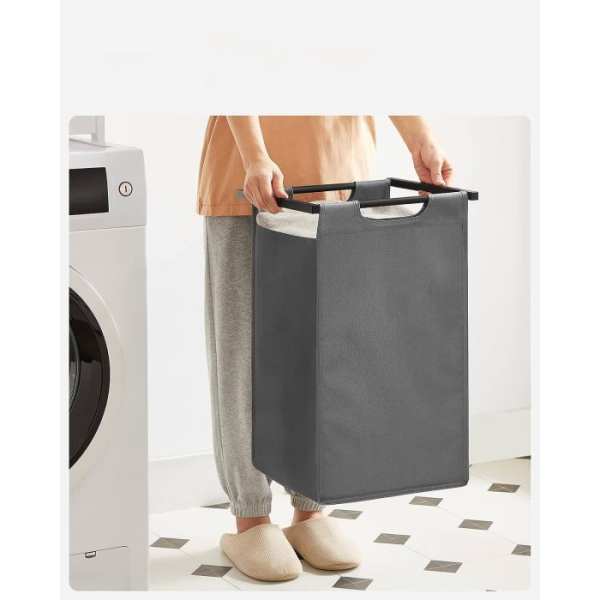2 predelka za ločeno shranjevanje: ta koš za perilo ima skupno prostornino 92 L, pri čemer ima vsaka košara 46 L. Njegova zasnova z 2 predelki vam omogoča, da perilo organizirate po vrsti in ločite svetlo perilo od temnega