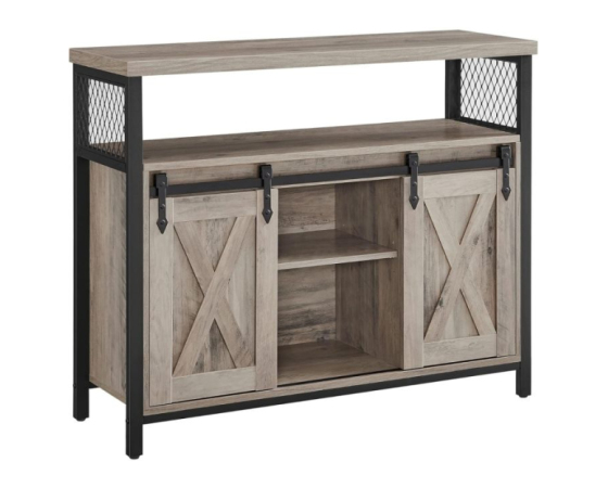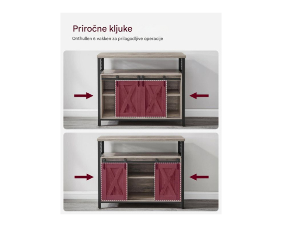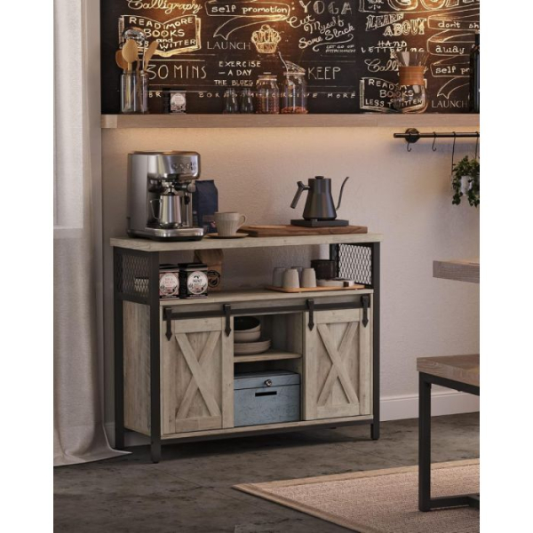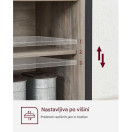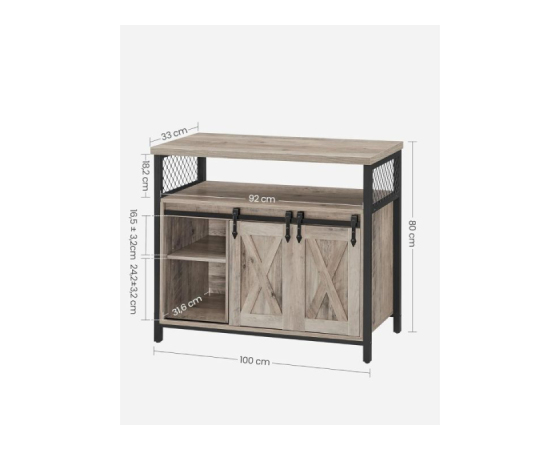 Združite funkcionalnost in estetski videz z VASAGLE stransko omarico v sodobnem industrijskem slogu. Zgornja površina nudi prostor za dekoracijo, rastline ali gospodinjske aparate, medtem ko dve prostorni omarici z vrati in osrednja odprta polica zagotavljajo veliko prostora za shranjevanje. Notranji polici sta po višini nastavljivi v treh nivojih, kar omogoča prilagoditev glede na potrebe – bodisi za krožnike, kozarce, knjige ali druge predmete. Stabilen kovinski okvir, izjemno obstojna iverna plošča in nastavljive nogice poskrbijo za ravnotežje tudi na nekoliko neravnih tleh. Greige barva lesa v kombinaciji s črnim ogrodjem doda sodoben in topel značaj vsakemu prostoru.