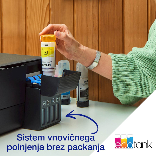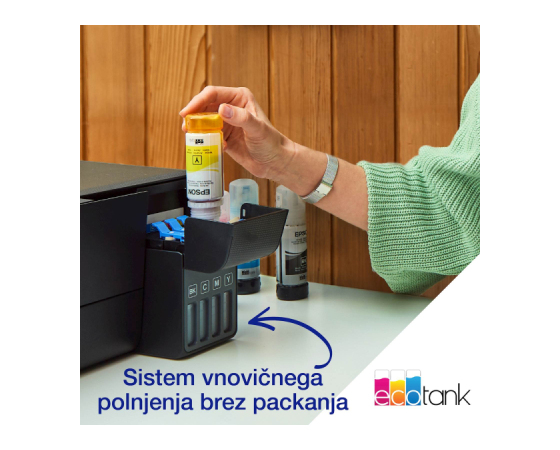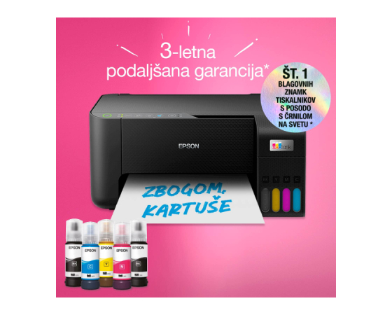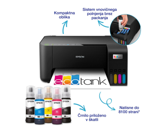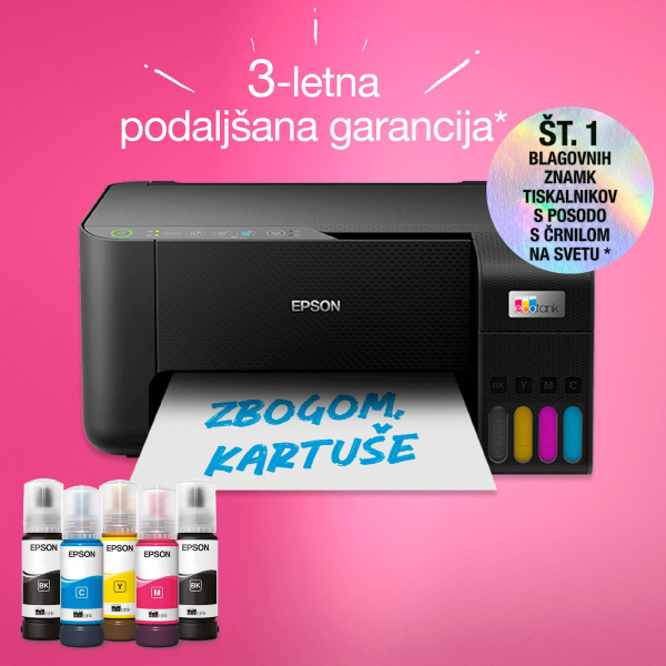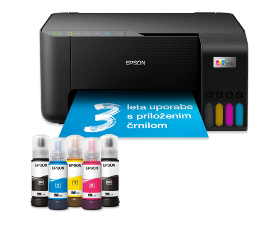 Priložena črnila: Bk za 8.100 strani in CMY za 6.500 strani , 2x črna + CMY (stekleničke serije 103)