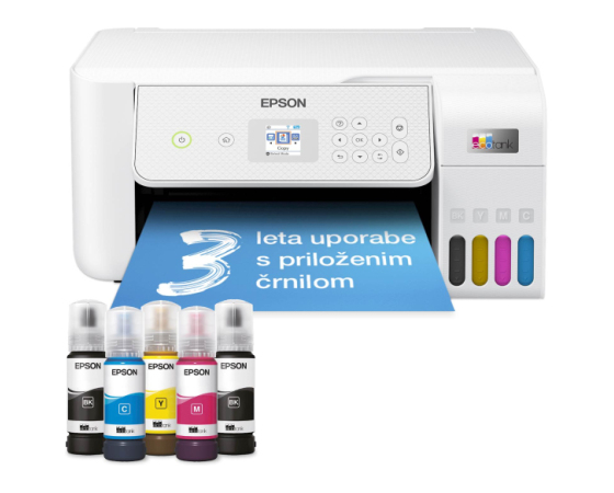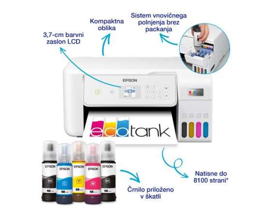 Priložena črnila: Bk za 8.100 strani in CMY za 6.500 strani , 2x črna + CMY (stekleničke serije 103)